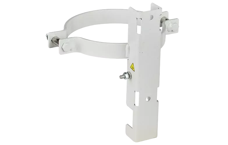 К столбовым опорам кронштейн крепится в помощью двух ленточных хомутов, а к стенам с помощью двух дюбелей и шурупов диаметром 6-8 мм. Крепежные элементы в комплект поставки не входят и приобретаются отдельно.