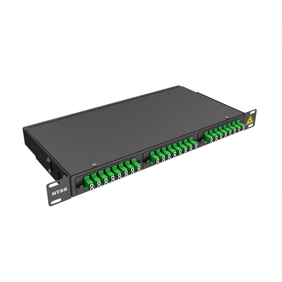 Кросс оптический распределительный стоечный NTSS серии Premium предназначен для оконцовки оптического кабеля и коммутации с внешними устройствами через оптические адаптеры. Кросс оптический 19" предназначен для установки в шкафы или стойки и имеет специальные кронштейны для крепления кросса в 19-ти дюймовые направляющие. Кронштейны могут быть установлены на двух разных уровнях, для возможности установки кросса как заподлицо с направляющими шкафа так и немного утопленным. Лицевая сторона оптического кросса NTSS-RFOB-PM изготавливается в двух видах конструктива - с отверстиями под адаптерные планки и со сплошной панелью. Тыльная стороны кросса имеет отверстия для ввода и крепления кабеля, для крепления центрального силового элемента. Для монтажа сплайс кассет в кроссе есть несъемные шпильки с гайками барашками. Кроссы выпускаются размерами от 1 до 4U и могут быть серого или черного цвета. Под заказ можно изготовить кроссы любого цвета.