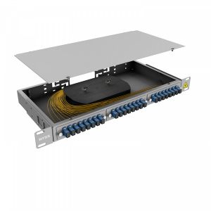 Кросс оптический распределительный стоечный NTSS серии Premium предназначен для оконцовки оптического кабеля и коммутации с внешними устройствами через оптические адаптеры. Кросс оптический 19" предназначен для установки в шкафы или стойки и имеет специальные кронштейны для крепления кросса в 19-ти дюймовые направляющие. Кронштейны могут быть установлены на двух разных уровнях, для возможности установки кросса как заподлицо с направляющими шкафа так и немного утопленным. Лицевая сторона оптического кросса NTSS-RFOB-PM изготавливается в двух видах конструктива - с отверстиями под адаптерные планки и со сплошной панелью. Тыльная стороны кросса имеет отверстия для ввода и крепления кабеля, для крепления центрального силового элемента. Для монтажа сплайс кассет в кроссе есть несъемные шпильки с гайками барашками. Кроссы выпускаются размерами от 1 до 4U и могут быть серого или черного цвета. Под заказ можно изготовить кроссы любого цвета.