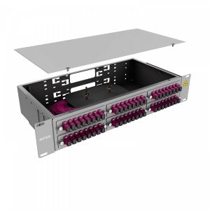 Кросс оптический распределительный стоечный NTSS серии Premium предназначен для оконцовки оптического кабеля и коммутации с внешними устройствами через оптические адаптеры. Кросс оптический 19" предназначен для установки в шкафы или стойки и имеет специальные кронштейны для крепления кросса в 19-ти дюймовые направляющие. Кронштейны могут быть установлены на двух разных уровнях, для возможности установки кросса как заподлицо с направляющими шкафа так и немного утопленным. Лицевая сторона оптического кросса NTSS-RFOB-PM изготавливается в двух видах конструктива - с отверстиями под адаптерные планки и со сплошной панелью. Тыльная стороны кросса имеет отверстия для ввода и крепления кабеля, для крепления центрального силового элемента. Для монтажа сплайс кассет в кроссе есть несъемные шпильки с гайками барашками. Кроссы выпускаются размерами от 1 до 4U и могут быть серого или черного цвета. Под заказ можно изготовить кроссы любого цвета.