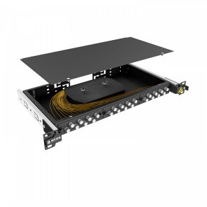 Кросс 19" NTSS PREMIUM выдвижной, предсобранный 1U, 16 портов FC/UPC, 9/125 мкм, черный