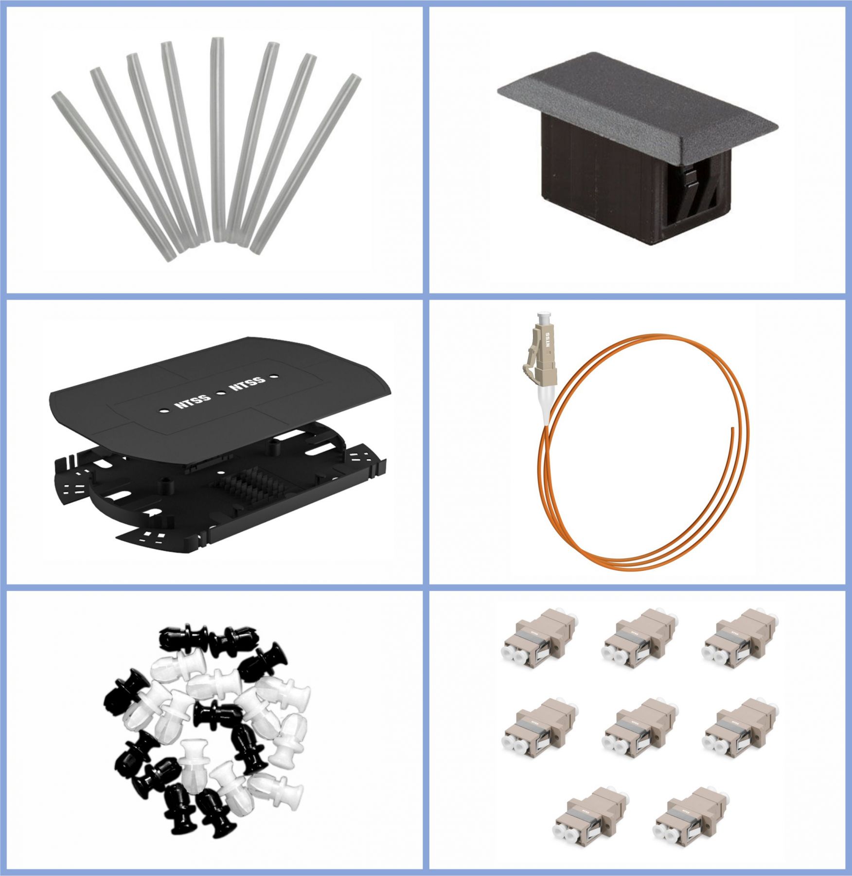 Кросс NTSS оптический 19'' укомплектованный 1U, 10 портов LC/UPC duplex, 50/125 мкм (планки, сплайс-кассета, пигтейлы, КДЗС, адаптеры) серый RAL 7035
