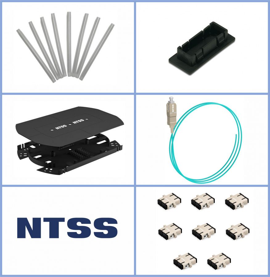 Кросс NTSS оптический 19'' укомплектованный 1U, 16 портов SC/UPC duplex, 50/125 мкм ОМ3 (сплошная панель, сплайс-кассета, пигтейлы, КДЗС, адаптеры) черный RAL 9005