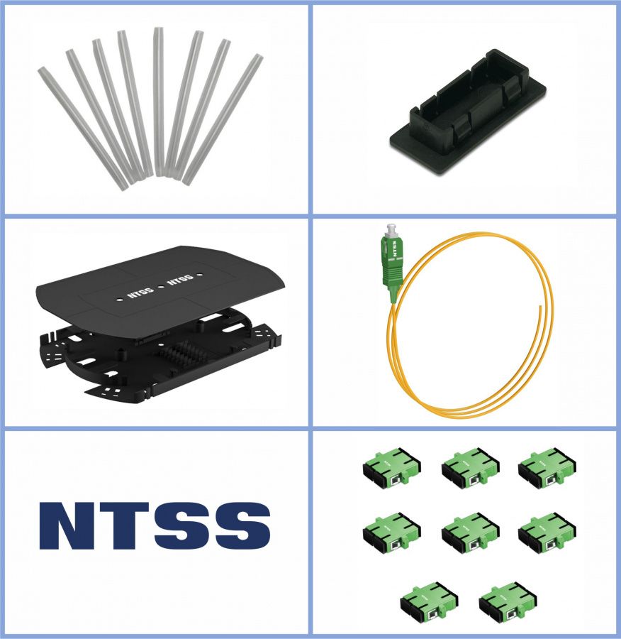 Кросс NTSS оптический 19'' укомплектованный 1U, 24 порта SC/APC duplex, 9/125 мкм (сплошная панель, сплайс-кассета 2шт, пигтейлы, КДЗС, адаптеры) серый RAL 7035