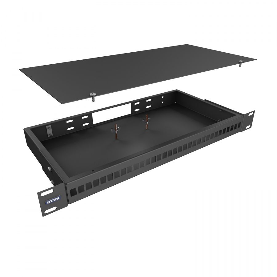 Кросс оптический распределительный стоечный NTSS предназначен для оконцовки оптического кабеля и коммутации с внешними устройствами через оптические адаптеры. Кросс оптический 19" предназначен для установки в шкафы или стойки и имеет специальные кронштейны для крепления кросса в 19-ти дюймовые направляющие. Кронштейны могут быть установлены на двух разных уровнях, для возможности установки кросса как заподлицо с направляющими шкафа так и немного утопленным. Лицевая сторона оптического кросса NTSS-RFOB изготавливается в двух видах конструктива - с отверстиями под адаптерные планки и со сплошной панелью. Тыльная сторона кросса имеет отверстия для ввода и крепления кабеля, для крепления центрального силового элемента. Для монтажа сплайс кассет в кроссе есть несъемные шпильки с гайками барашками. Кроссы выпускаются размерами от 1 до 4U и могут быть серого или черного цвета. Под заказ можно изготовить кроссы любого цвета.