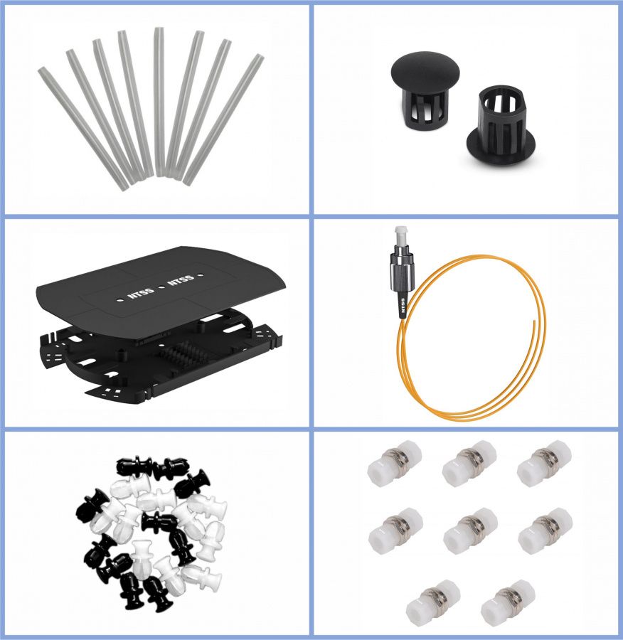 Кросс NTSS оптический 19'' укомплектованный 2U, 48 портов FC/UPC, 9/125 мкм (планки, сплайс-кассета 2шт, пигтейлы, КДЗС, адаптеры) серый RAL 7035