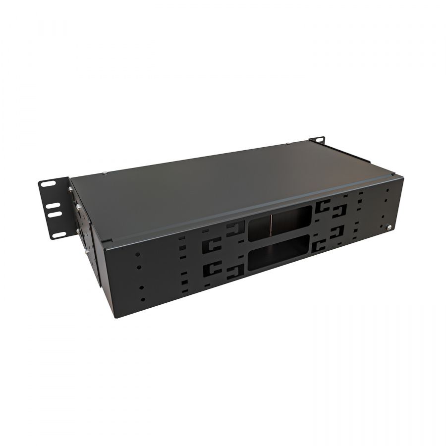 Кросс NTSS оптический 19'' укомплектованный 2U, 96 портов SC/UPC, 50/125 мкм (сплошная панель, сплайс-кассета 3шт, пигтейлы, КДЗС, адаптеры) черный RAL 9005