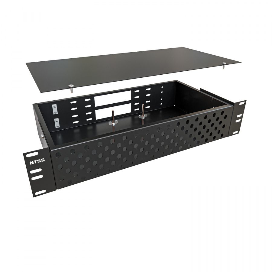 Кросс оптический распределительный стоечный NTSS предназначен для оконцовки оптического кабеля и коммутации с внешними устройствами через оптические адаптеры. Кросс оптический 19" предназначен для установки в шкафы или стойки и имеет специальные кронштейны для крепления кросса в 19-ти дюймовые направляющие. Кронштейны могут быть установлены на двух разных уровнях, для возможности установки кросса как заподлицо с направляющими шкафа так и немного утопленным. Лицевая сторона оптического кросса NTSS-RFOB изготавливается в двух видах конструктива - с отверстиями под адаптерные планки и со сплошной панелью. Тыльная сторона кросса имеет отверстия для ввода и крепления кабеля, для крепления центрального силового элемента. Для монтажа сплайс кассет в кроссе есть несъемные шпильки с гайками барашками. Кроссы выпускаются размерами от 1 до 4U и могут быть серого или черного цвета. Под заказ можно изготовить кроссы любого цвета.