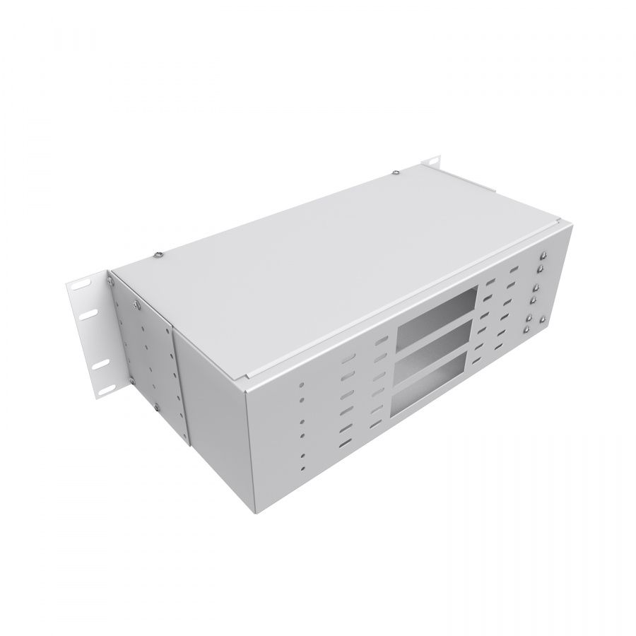 Кросс оптический распределительный стоечный NTSS предназначен для оконцовки оптического кабеля и коммутации с внешними устройствами через оптические адаптеры. Кросс оптический 19" предназначен для установки в шкафы или стойки и имеет специальные кронштейны для крепления кросса в 19-ти дюймовые направляющие. Кронштейны могут быть установлены на двух разных уровнях, для возможности установки кросса как заподлицо с направляющими шкафа так и немного утопленным. Лицевая сторона оптического кросса NTSS-RFOB изготавливается в двух видах конструктива - с отверстиями под адаптерные планки и со сплошной панелью. Тыльная сторона кросса имеет отверстия для ввода и крепления кабеля, для крепления центрального силового элемента. Для монтажа сплайс кассет в кроссе есть несъемные шпильки с гайками барашками. Кроссы выпускаются размерами от 1 до 4U и могут быть серого или черного цвета. Под заказ можно изготовить кроссы любого цвета.