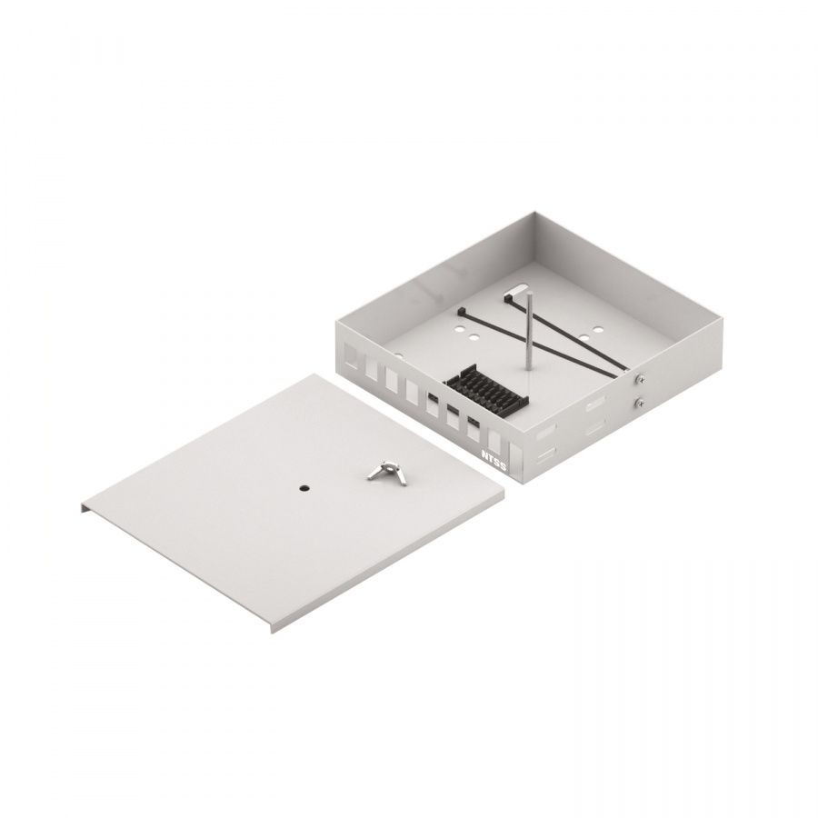 Кросс оптический настенный Микро NTSS-WFOBMk предназначен для оконцовки оптического кабеля и коммутации с внешними устройствами через оптические адаптеры. Кросс представляет собой компактное универсальное устройство, монтируемое на стену или любую иную плоскую поверхность. Изделие имеет жесткий металлический корпус, покрытый порошковой окраской. На боковой панели корпуса кросса выполнены отверстия для ввода и вывода кабелей или коммутационных шнуров. На нижней стороне кросса расположены отверстия под установку оптических адаптеров в соответствии с артикульным номером кросса. Внутри изделия предусмотрен ложемент, для фиксации термоусаживаемых гильз КДЗС, защищающих места сварки оптических волокон. В корпусе кросса предусмотрены места крепления внешней оболочки оптического кабеля, упрочняющих волокон, силового элемента вводимого кабеля. Кроссы выпускаются в сером и черном цвете. Под заказ возможно изготовление кроссов любого цвета.