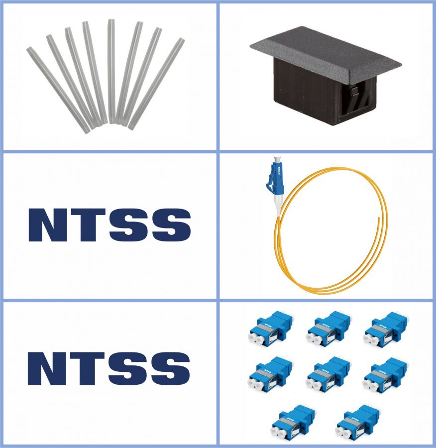 Кросс NTSS оптический настенный Микро 8, укомплектованный, 2 порта LC/UPC duplex, 9/125 мкм (сплошная панель, ложемент, пигтейлы, КДЗС, адаптеры) серый RAL 7035