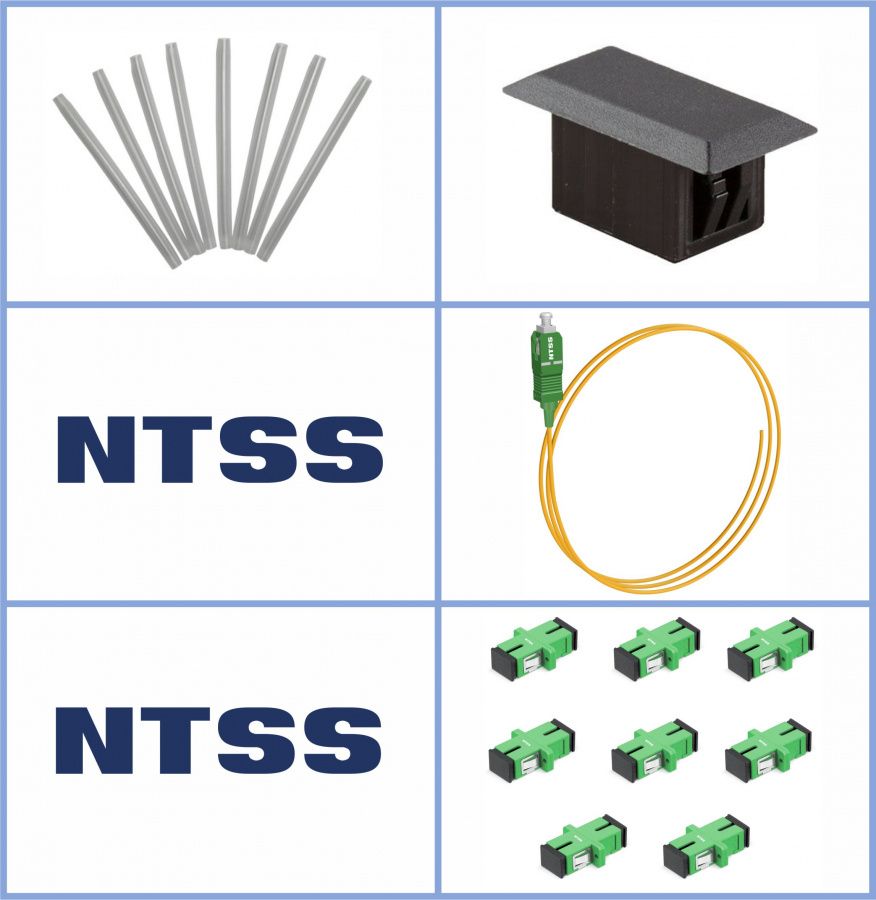 Кросс NTSS оптический настенный Микро 8, укомплектованный, 4 порта SC/APC, 9/125 мкм (сплошная панель, ложемент, пигтейлы, КДЗС, адаптеры) серый RAL 7035
