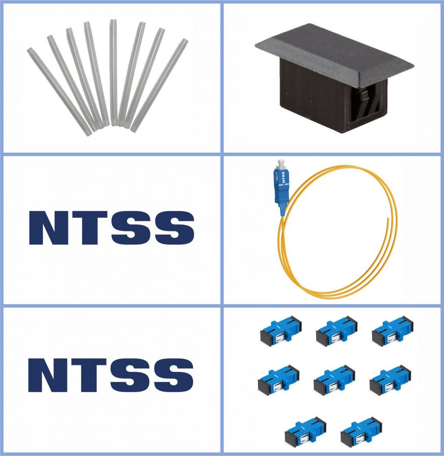 Кросс NTSS оптический настенный Микро 8, укомплектованный, 4 порта SC/UPC, 9/125 мкм (сплошная панель, ложемент, пигтейлы, КДЗС, адаптеры) серый RAL 7035