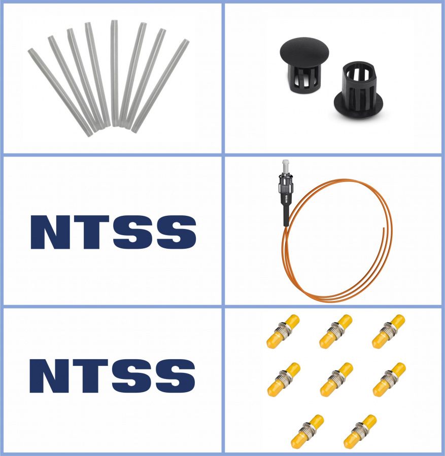 Кросс NTSS оптический настенный Микро 8, укомплектованный, 4 порта ST/UPC, 50/125 мкм (сплошная панель, ложемент, пигтейлы, КДЗС, адаптеры) серый RAL 7035