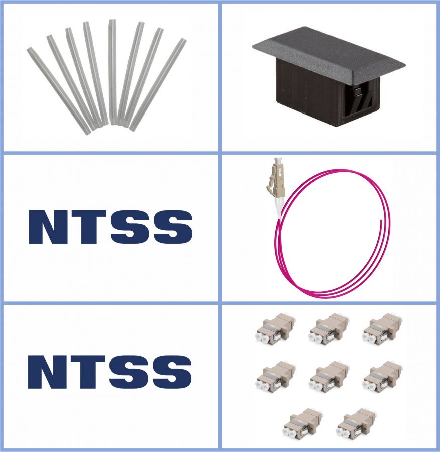Кросс NTSS оптический настенный Микро, укомплектованный, 6 портов LC/UPC duplex, 50/125 мкм ОМ4 (сплошная панель, ложемент, пигтейлы, КДЗС, адаптеры) серый RAL 7035