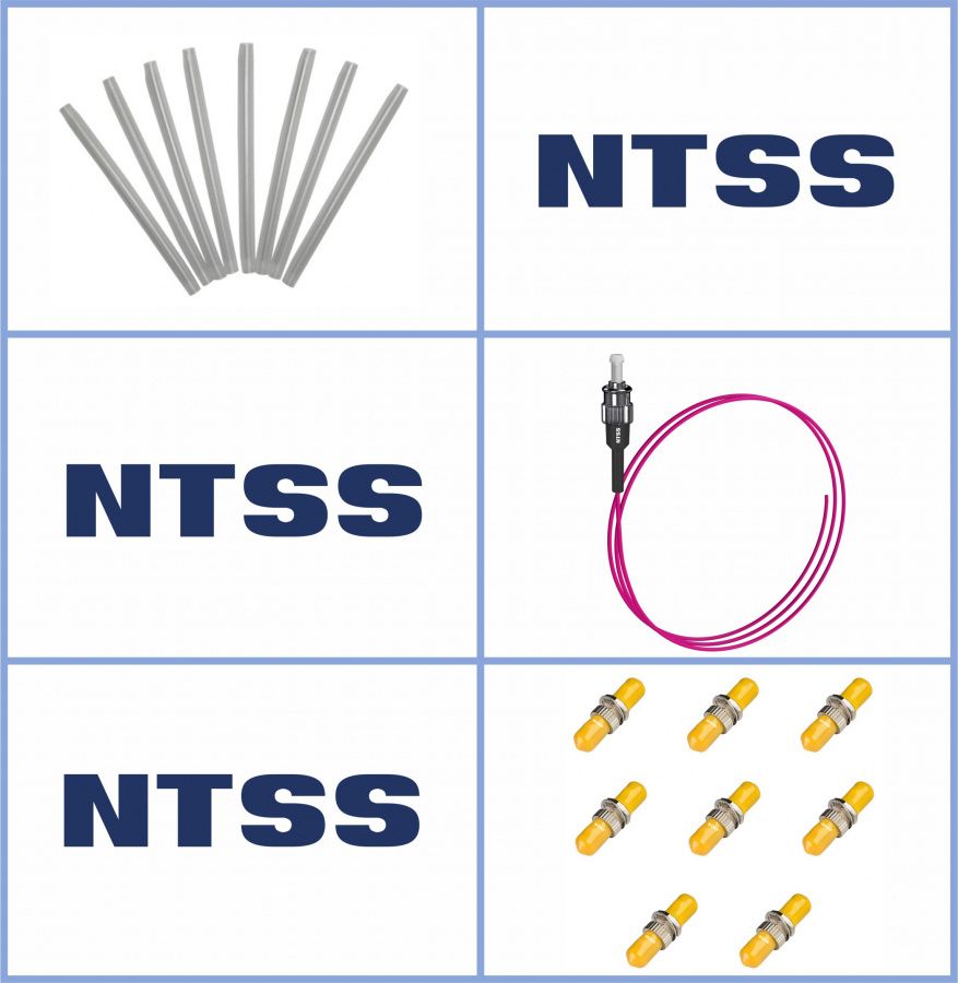 Кросс NTSS оптический настенный Микро, укомплектованный, 8 портов ST/UPC, 50/125 мкм ОМ4 (сплошная панель, ложемент, пигтейлы, КДЗС, адаптеры) серый RAL 7035