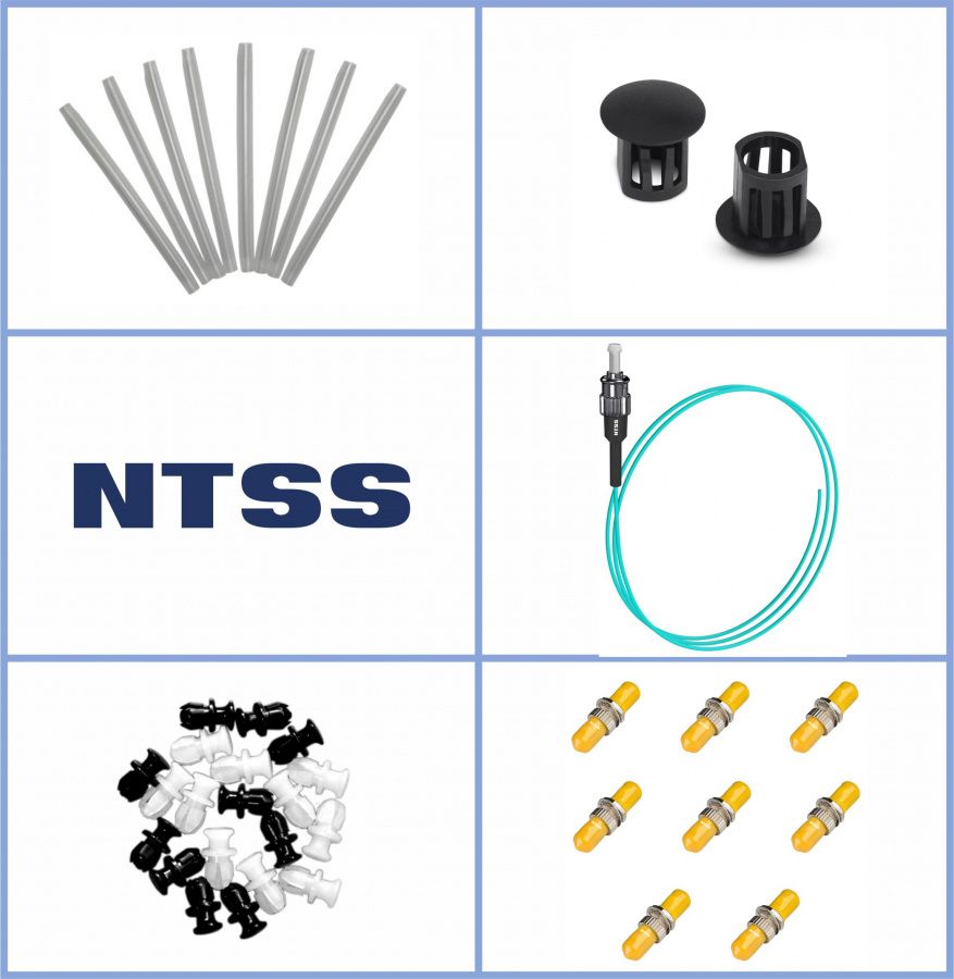 Кросс NTSS оптический настенный Мини, укомплектованный, 4 порта ST/UPC, 50/125 мкм ОМ3 (планка, ложемент, пигтейлы, КДЗС, адаптеры) серый RAL 7035