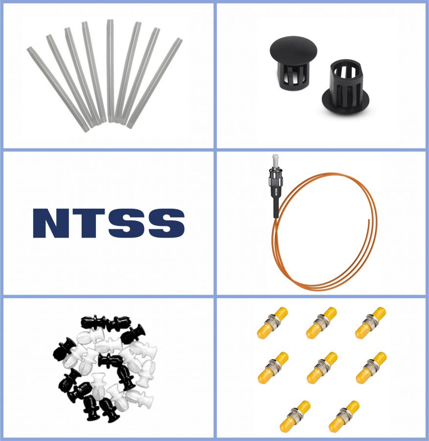 Кросс NTSS оптический настенный Мини, укомплектованный, 4 порта ST/UPC, 50/125 мкм (планка, ложемент, пигтейлы, КДЗС, адаптеры) серый RAL 7035