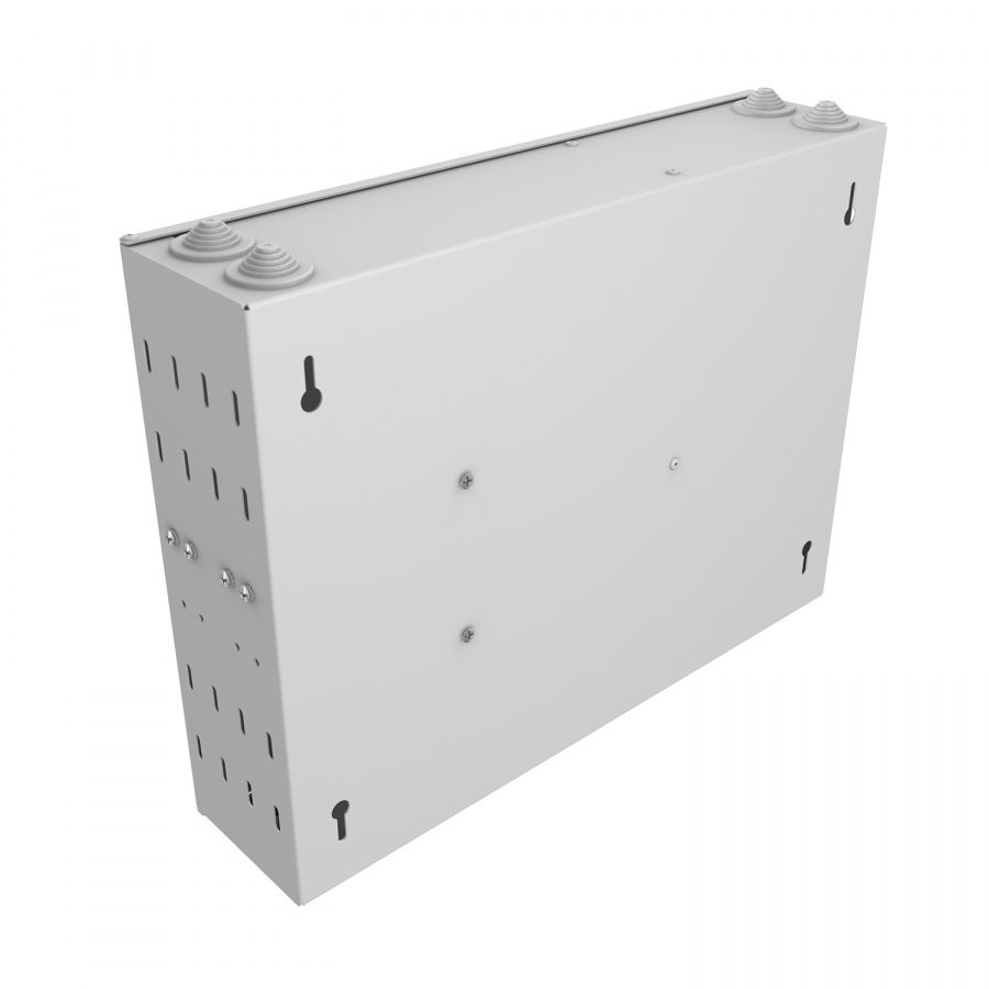 Кросс оптический настенный предназначен для оконцовки оптического кабеля и коммутации с внешними устройствами через оптические адаптеры. Кросс оптический NTSS-WFOB предназначен для монтажа на стену. Настенные оптические кроссы под планки изготавливаются трёх размеров, до 16 портов - под 2 планки по 8 портов, до 48 портов - под 2 планки по 24 порта или 4 планки по 8 портов, до 96 портов - под 12 планок по 8 портов. Для ввода кабеля имеются отверстия сверху и снизу кросса, с торца кросса расположены отверстия для крепления вводимого кабеля и центрального силового элемента. Для монтажа сплайс кассет в кроссе есть несъемные шпильки с гайками-барашками. Настенные кроссы могут закрываться на ключ. Кроссы выпускаются в сером и черном цвете. Под заказ возможно изготовление кроссов любого цвета.