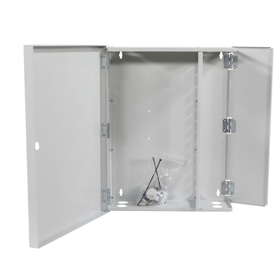 Кросс оптический настенный предназначен для оконцовки оптического кабеля и коммутации с внешними устройствами через оптические адаптеры. Кросс оптический NTSS-WFOB предназначен для монтажа на стену. Настенные оптические кроссы под планки изготавливаются трёх размеров, до 16 портов - под 2 планки по 8 портов, до 48 портов - под 2 планки по 24 порта или 4 планки по 8 портов, до 96 портов - под 12 планок по 8 портов. Для ввода кабеля имеются отверстия сверху и снизу кросса, с торца кросса расположены отверстия для крепления вводимого кабеля и центрального силового элемента. Для монтажа сплайс кассет в кроссе есть несъемные шпильки с гайками-барашками. Настенные кроссы могут закрываться на ключ. Кроссы выпускаются в сером и черном цвете. Под заказ возможно изготовление кроссов любого цвета.