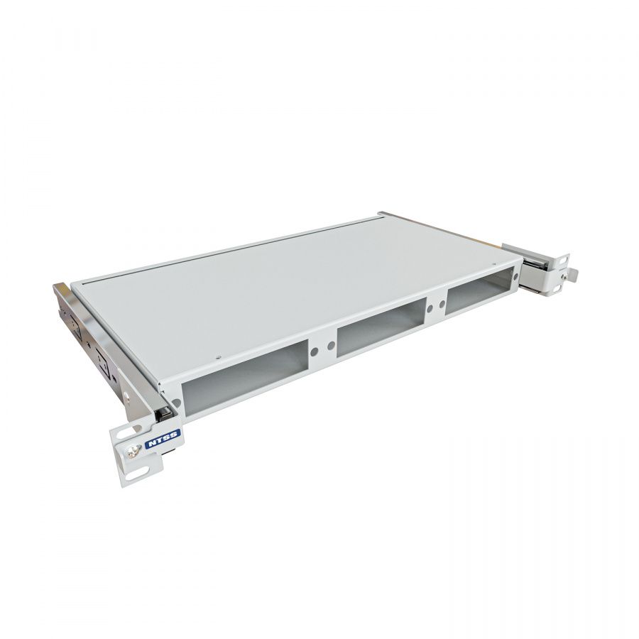 Кросс NTSS оптический выдвижной 19'' укомплектованный 1U, 24 порта LC/UPC duplex, 50/125 мкм ОМ4 (планки, сплайс-кассета 2шт, пигтейлы, КДЗС, адаптеры) серый RAL 7035