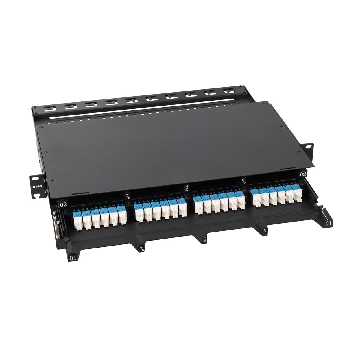 - Кассеты NTSS-CSM5-PM вставляются в кросс на выдвижных салазках и легко извлекаются с помощью механизма извлечения.