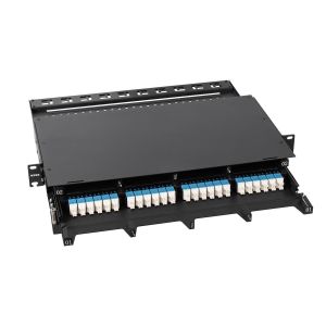- Ультравысокая плотность размещения портов – до 192 волокон на 1юнит (при установке 8 кассет по 24 волокна с адаптерами LC).