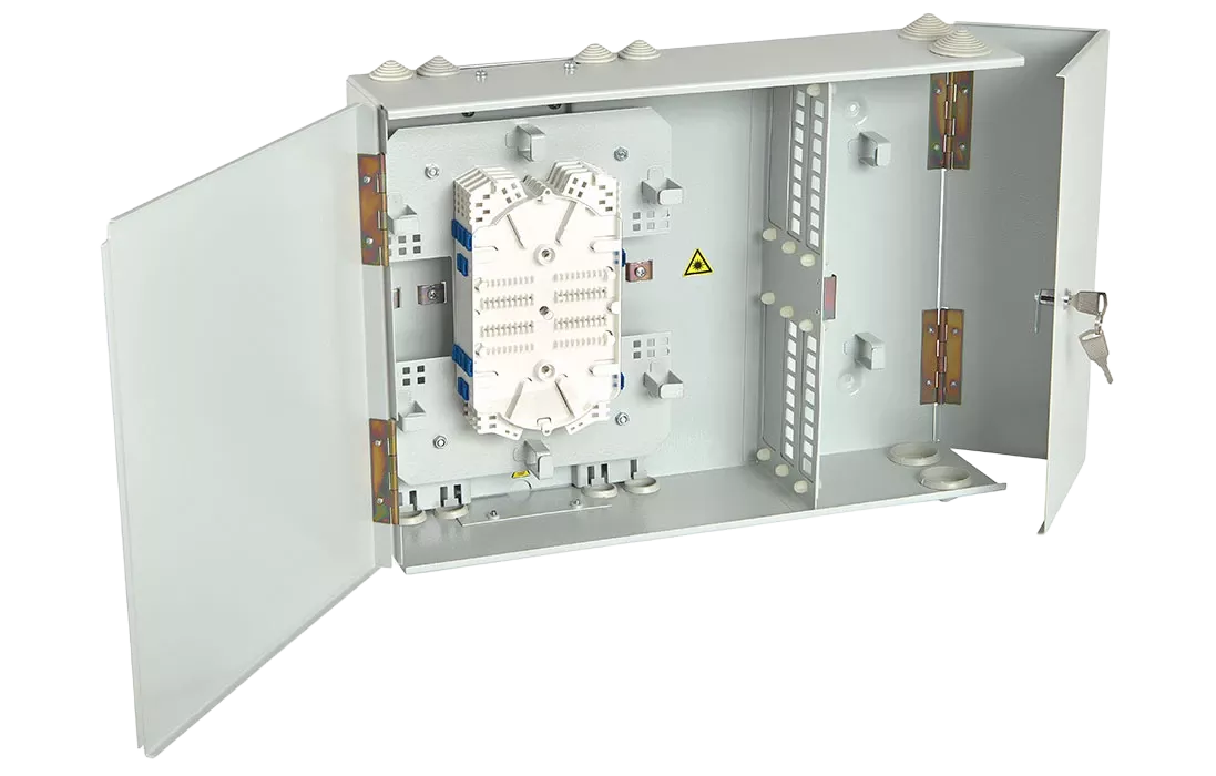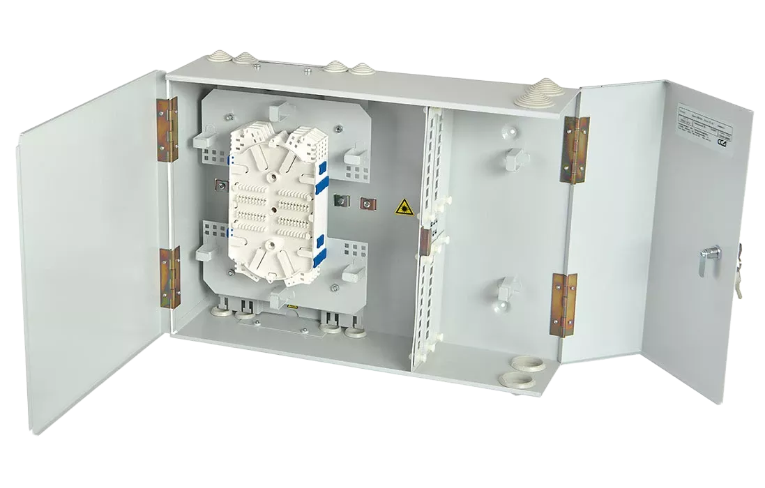 Оптические кабели разделываются и фиксируются в зоне ввода. Далее волокна в модулях поступают на кассеты для сварки с пигтейлами.