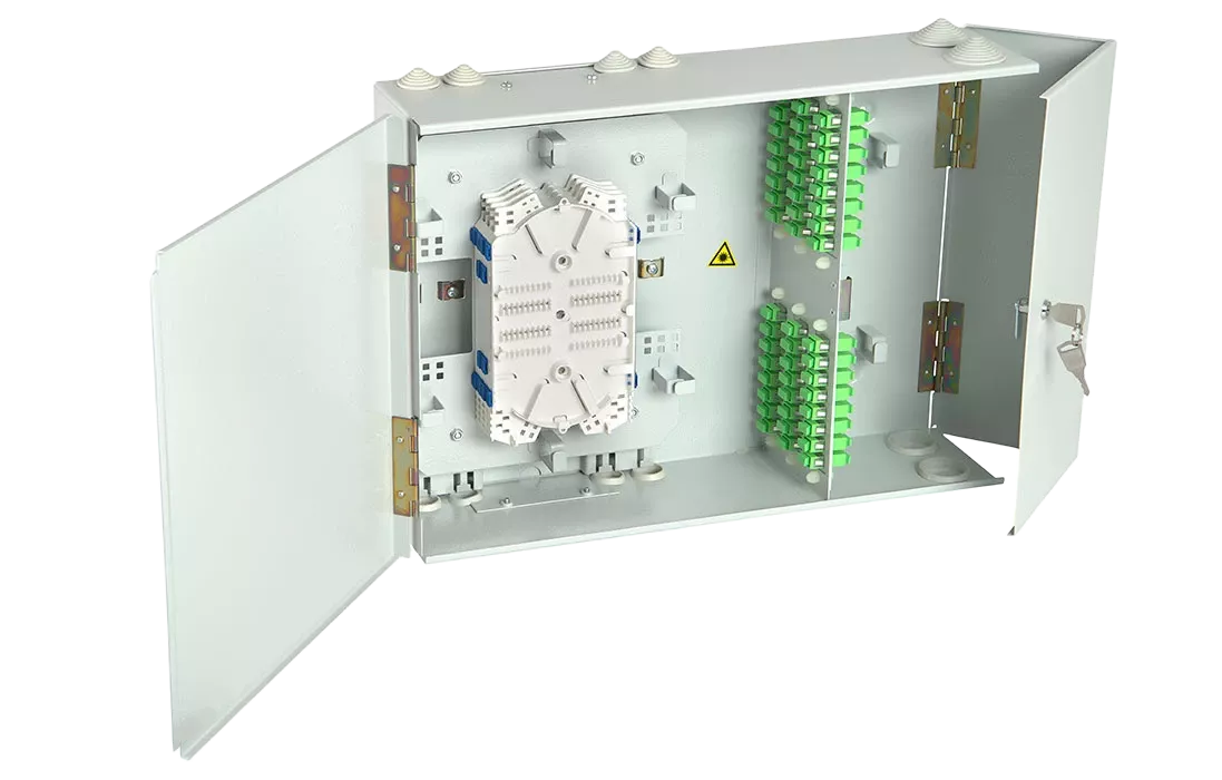 Оптические кабели разделываются и фиксируются в зоне ввода. Далее волокна в модулях поступают на кассеты для сварки с пигтейлами.