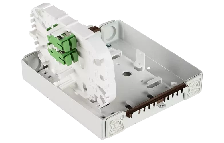 Имеют пылезащитный металлический корпус со съёмной крышкой, внутри которого находится пластиковая вставка со съёмной поворотной кассетой. С внутренней стороны кассеты выкладывается запас волокон и размещаются ложементы для КДЗС, а с наружной стороны находятся гнёзда для установки оптических адаптеров. Съёмная откидная монтажная панель обеспечивает удобство монтажа и эксплуатации. Для ограничения доступа оснащаются винтом-секреткой.