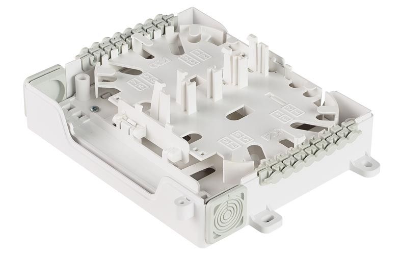 Имеют пылезащитный пластмассовый корпус со съёмной крышкой, внутри которого находится вставка со съёмной поворотной кассетой. С внутренней стороны кассеты выкладывается запас волокон и размещаются ложементы для КДЗС, а с наружной стороны находятся гнёзда для установки оптических адаптеров SC бесфланцевого типа. Съёмная откидная монтажная панель обеспечивает удобство монтажа и эксплуатации. Для ограничения доступа оснащаются винтом-секреткой.
