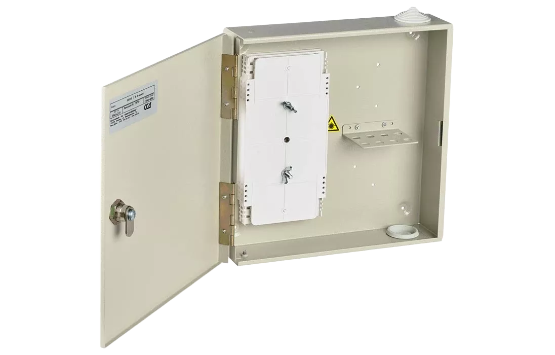 Оптические кабели разделываются и фиксируются в зоне ввода. Далее волокна в модулях поступают на кассеты для сварки с пигтейлами.