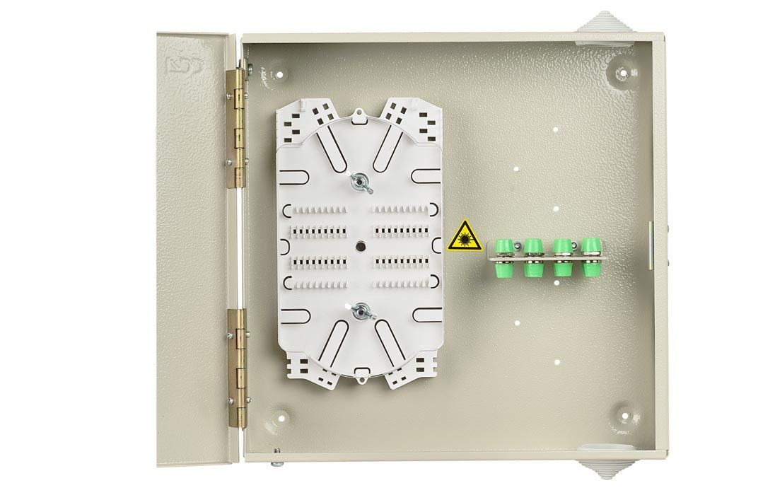 Оптические кабели разделываются и фиксируются в зоне ввода. Далее волокна в модулях поступают на кассеты для сварки с пигтейлами.