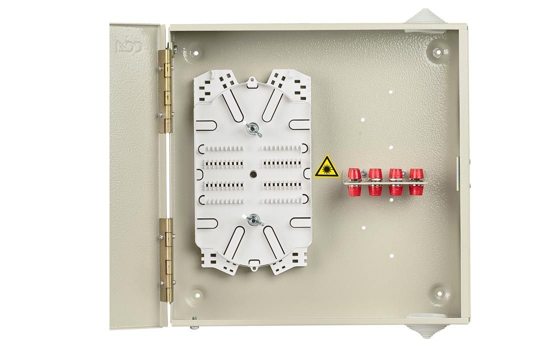 Оптические кабели разделываются и фиксируются в зоне ввода. Далее волокна в модулях поступают на кассеты для сварки с пигтейлами.