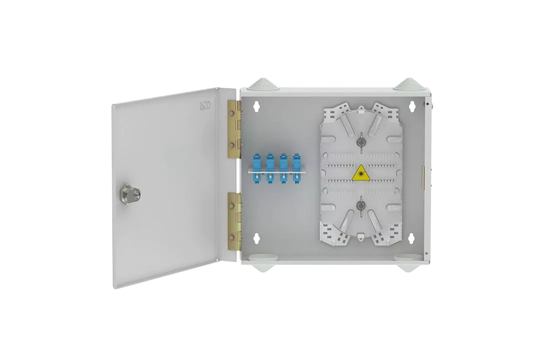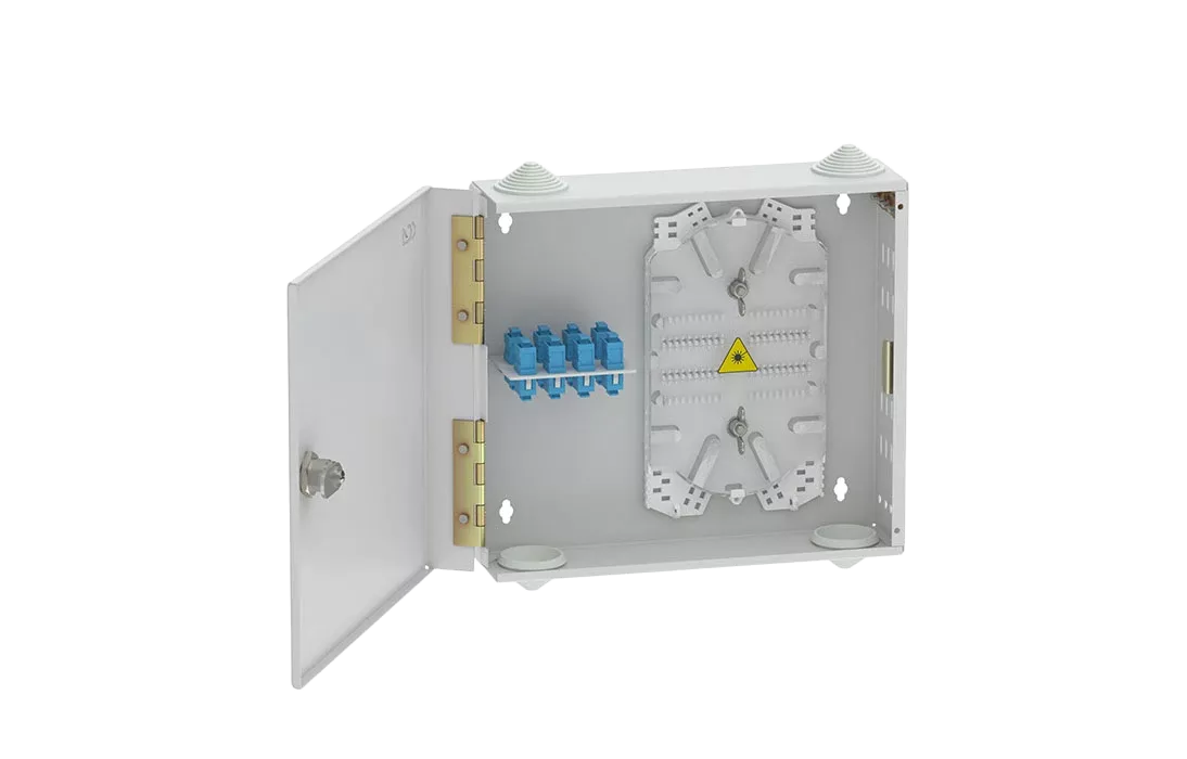 Оптические кабели разделываются и фиксируются в зоне ввода. Далее волокна в модулях поступают на кассету для сварки с пигтейлами.