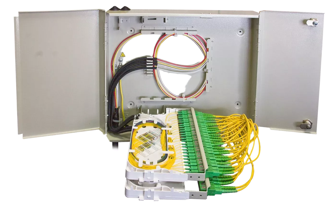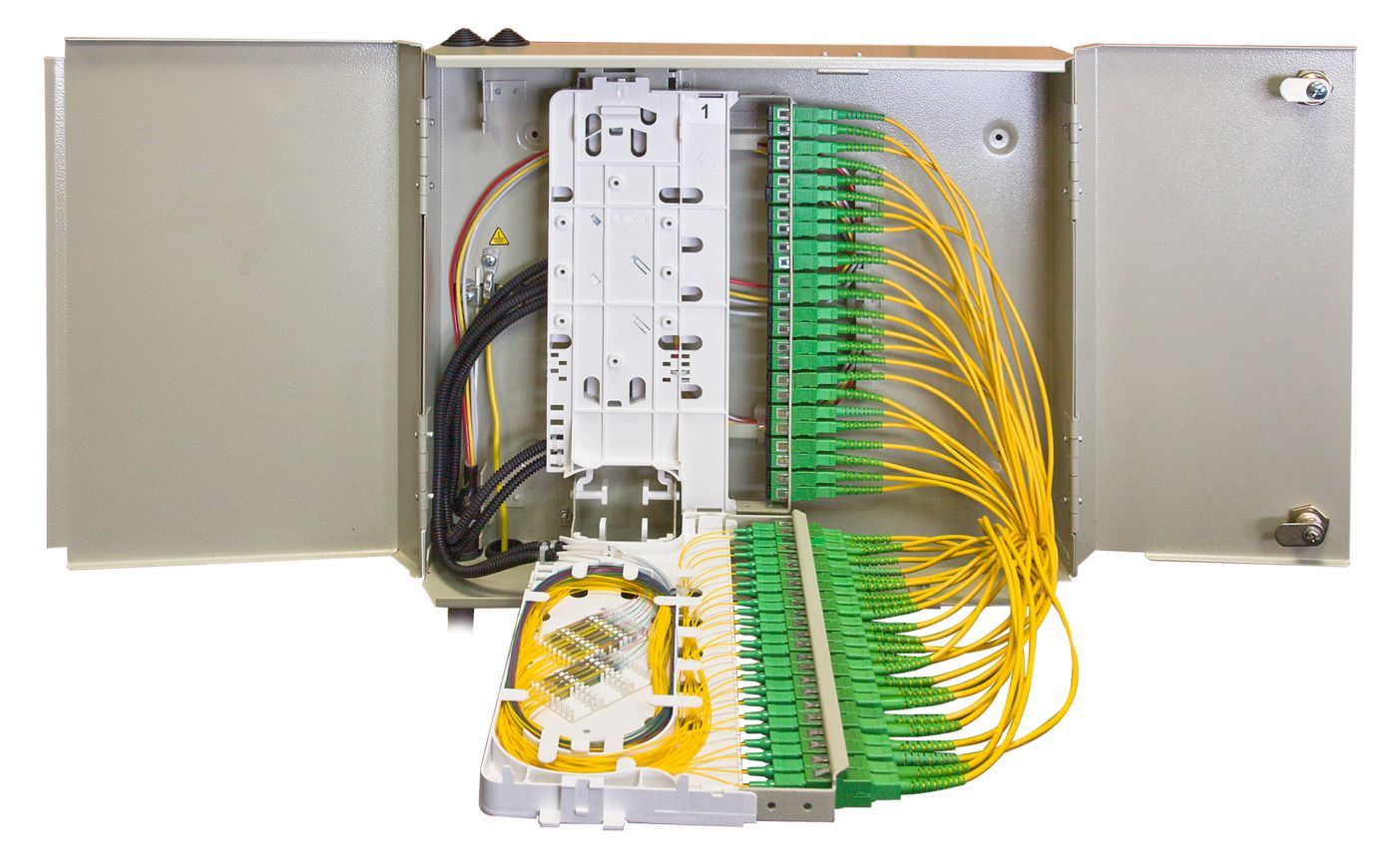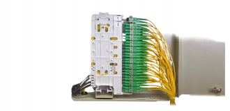 Оптические кабели разделываются и фиксируются в зоне ввода. Далее волокна в транспортных трубках поступают в зону монтажа на соответствующий модуль.