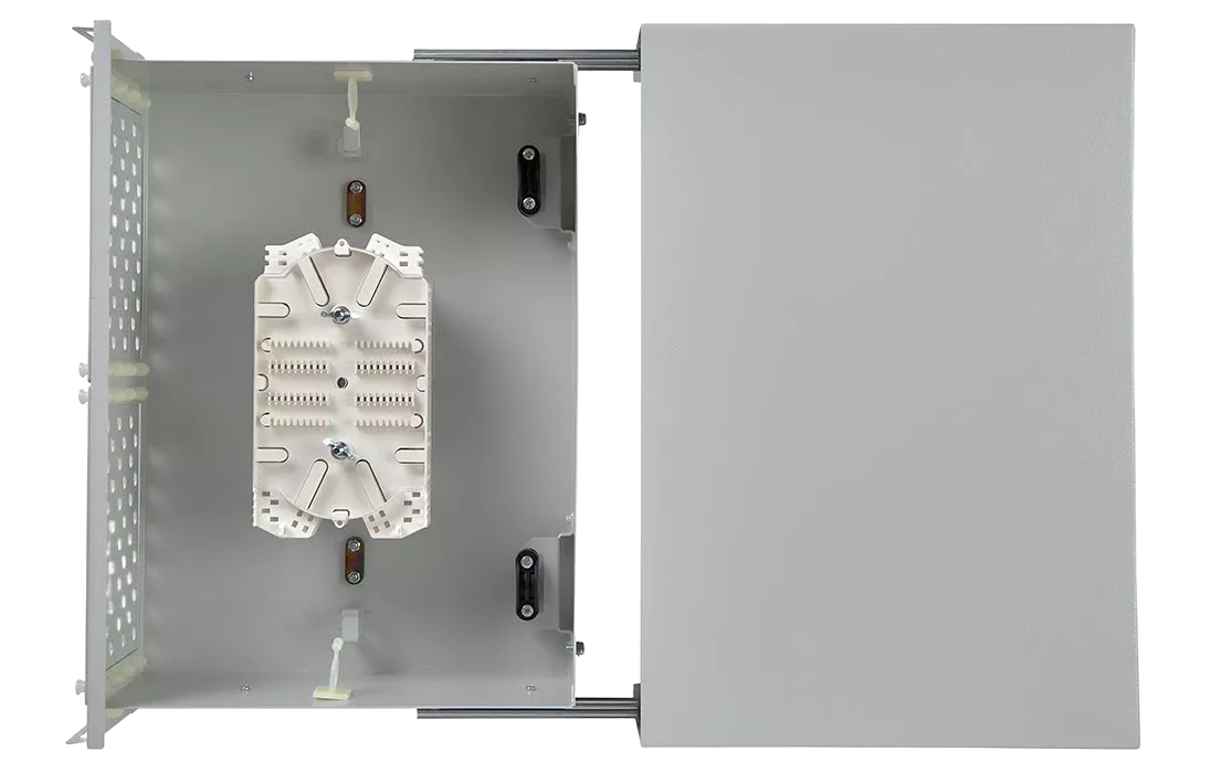 Кросс имеет выдвижную оптическую полку, что облегчает монтаж и последующее обслуживание. В кроссе используются широкие сменные металлические планки на 12 отверстий, которые обеспечивают установку адаптеров-розеток типа FC и ST. Также к кроссам ШКОС-ВП подходят планки из линейки кроссов ШКОС-М.