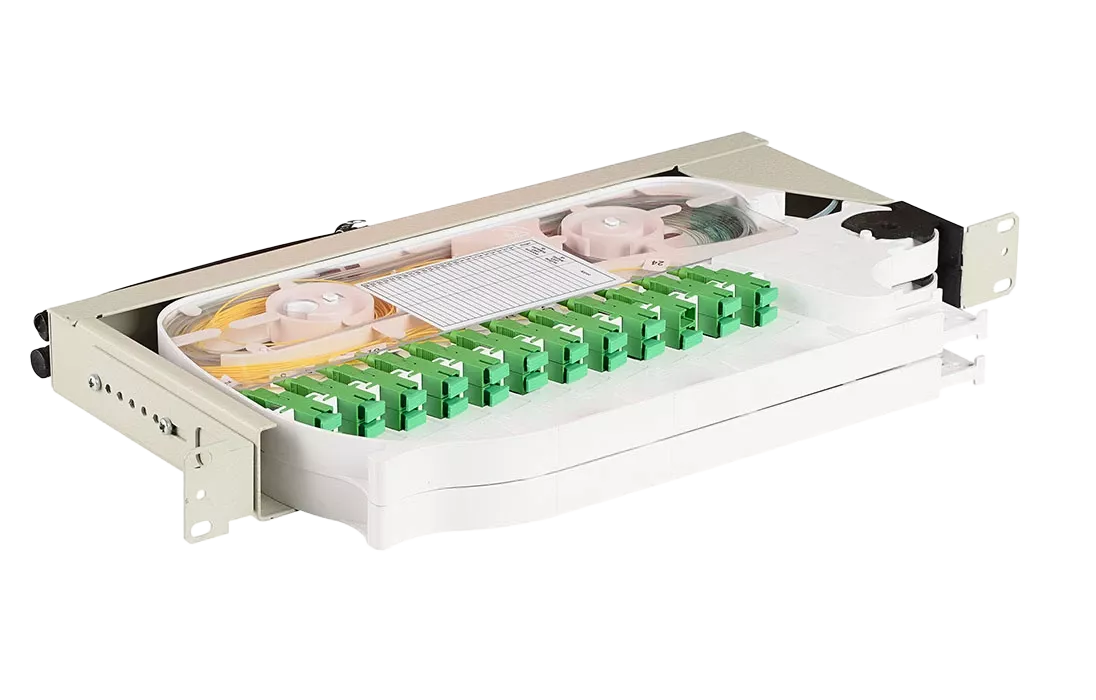 Имеет повышенную плотность монтажа по сравнению с обычными кроссами 19" - 48 портов SC на 1U. При использовании соединителей LC емкость/плотность размещения портов удваивается.