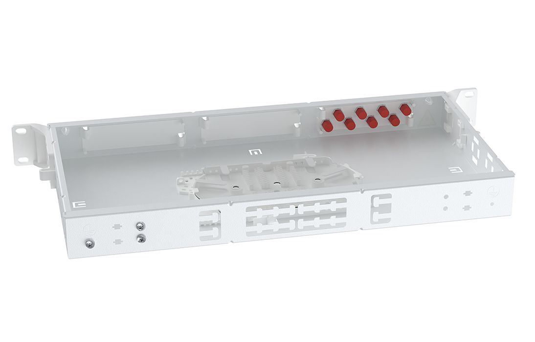 Крепление кабеля по оболочке осуществляется металлическим хомутом и/или нейлоновыми стяжками, на Т-образном лепестке. Центральный силовой элемент крепится при помощи металлической скобы. Сменные пластиковые планки на 4 и 8 отверстий обеспечивают установку адаптеров-розеток различных типов: FC, SC, ST, дуплекс LC.