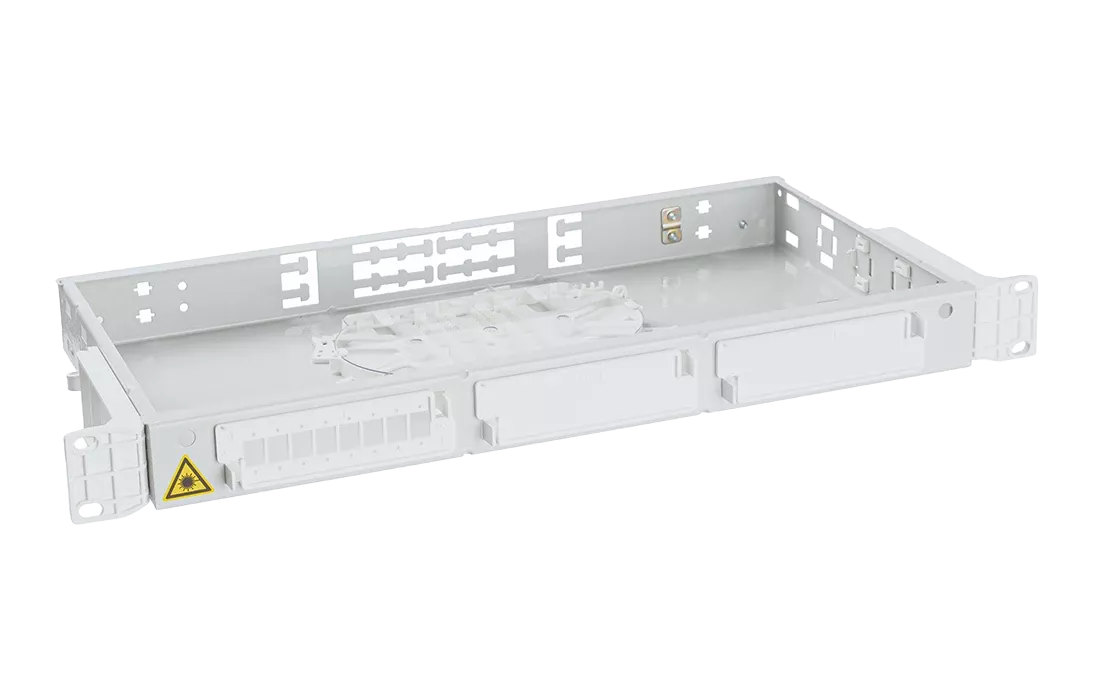 Крепление кабеля по оболочке осуществляется металлическим хомутом и/или нейлоновыми стяжками, на Т-образном лепестке. Центральный силовой элемент крепится при помощи металлической скобы. Сменные пластиковые планки на 4 и 8 отверстий обеспечивают установку адаптеров-розеток различных типов: FC, SC, ST, дуплекс LC.