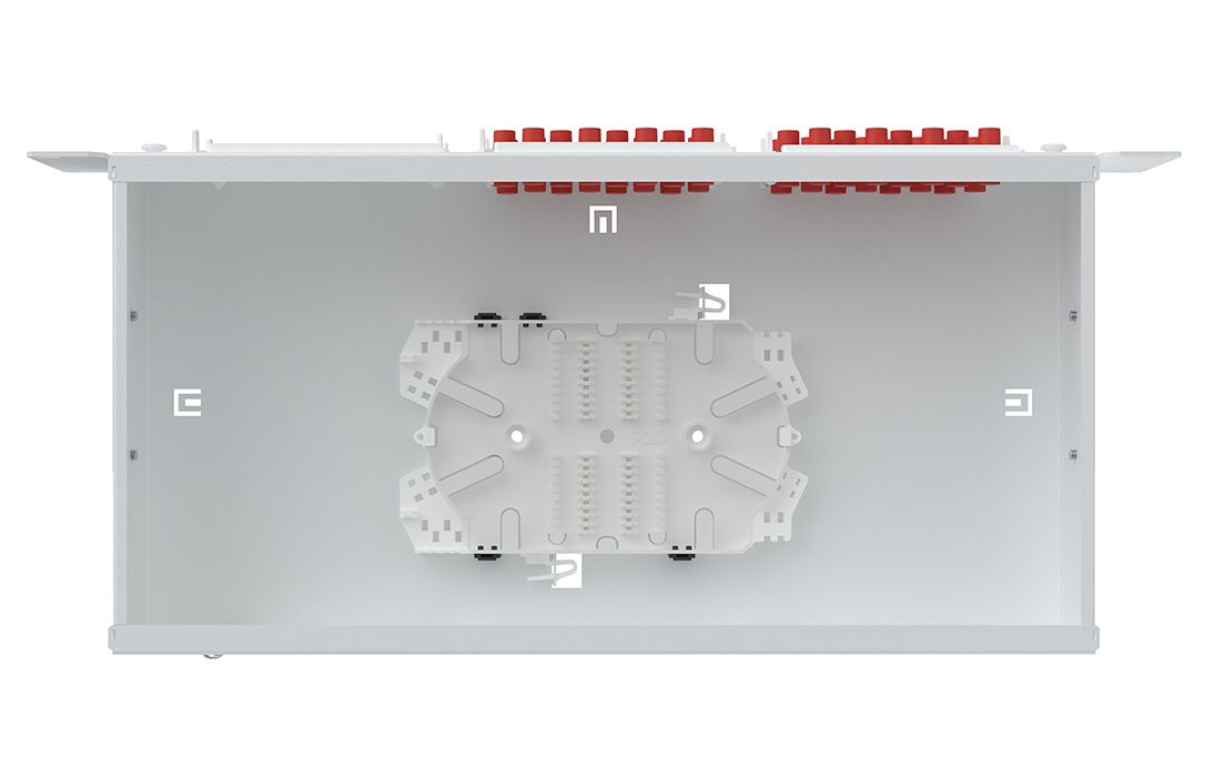 Крепление кабеля по оболочке осуществляется металлическим хомутом и/или нейлоновыми стяжками, на Т-образном лепестке. Центральный силовой элемент крепится при помощи металлической скобы. Сменные пластиковые планки на 4 и 8 отверстий обеспечивают установку адаптеров-розеток различных типов: FC, SC, ST, дуплекс LC.