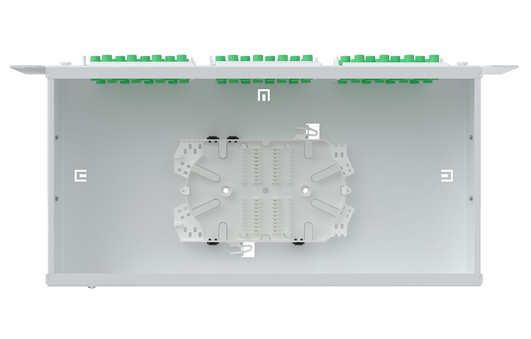 Крепление кабеля по оболочке осуществляется металлическим хомутом и/или нейлоновыми стяжками, на Т-образном лепестке. Центральный силовой элемент крепится при помощи металлической скобы. Сменные пластиковые планки на 4 и 8 отверстий обеспечивают установку адаптеров-розеток различных типов: FC, SC, ST, дуплекс LC.