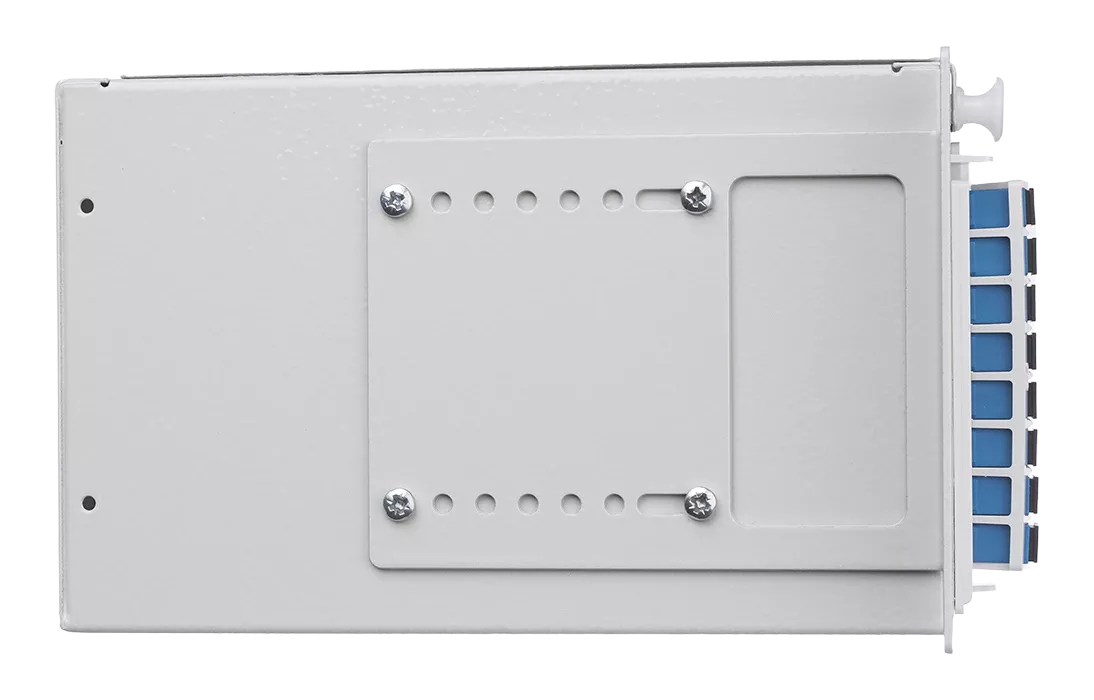 Крепление кабеля по оболочке осуществляется металлическим хомутом и/или нейлоновыми стяжками, на Т-образном лепестке. Центральный силовой элемент крепится при помощи металлической скобы. Сменные пластиковые планки на 4 и 8 отверстий обеспечивают установку адаптеров-розеток различных типов: FC, SC, ST, дуплекс LC.