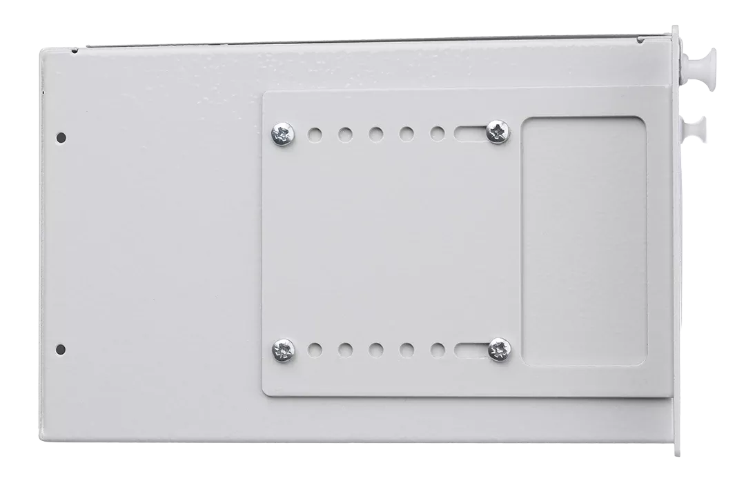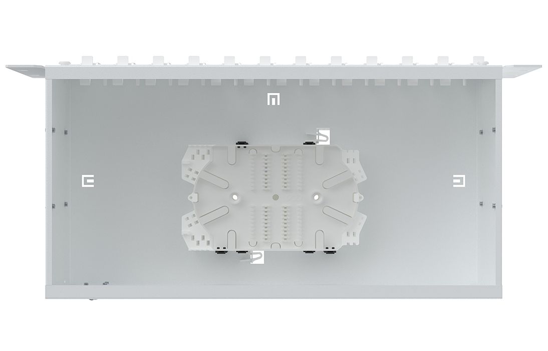Крепление кабеля по оболочке осуществляется металлическим хомутом и/или нейлоновыми стяжками, на Т-образном лепестке. Центральный силовой элемент крепится при помощи металлической скобы. Сменные пластиковые планки на 4 и 8 отверстий обеспечивают установку адаптеров-розеток различных типов: FC, SC, ST, дуплекс LC.