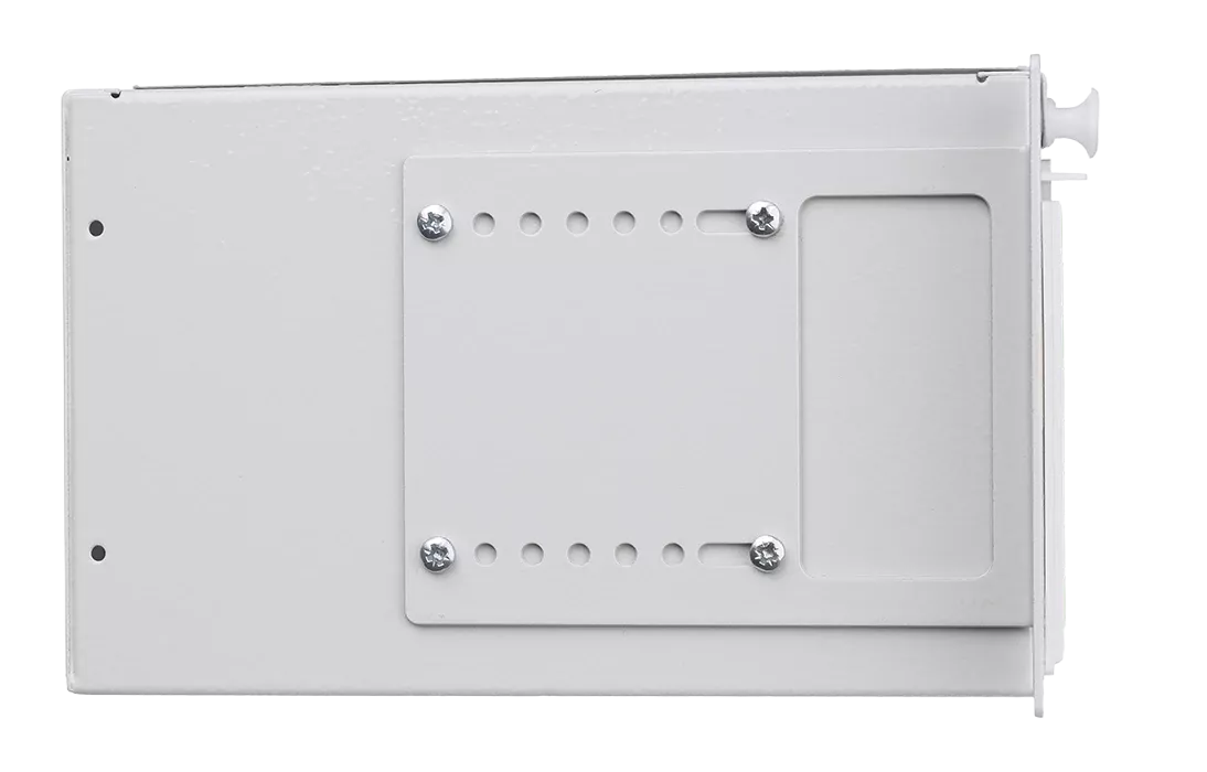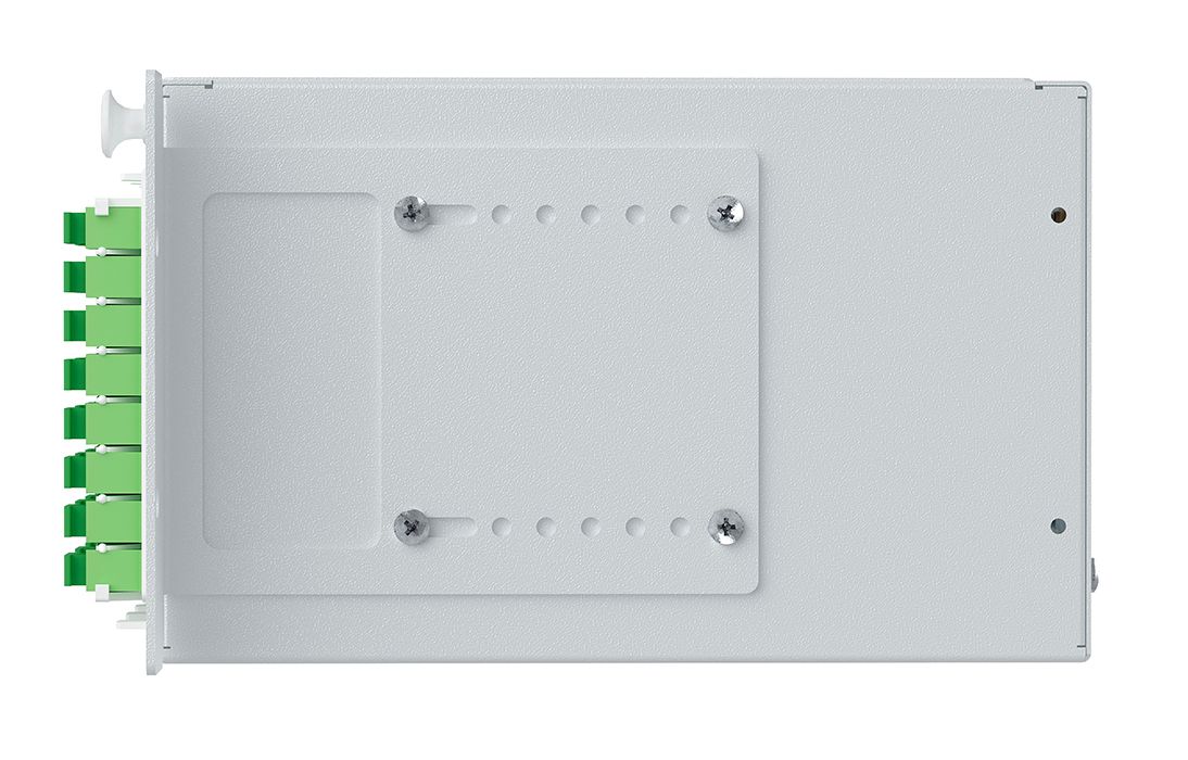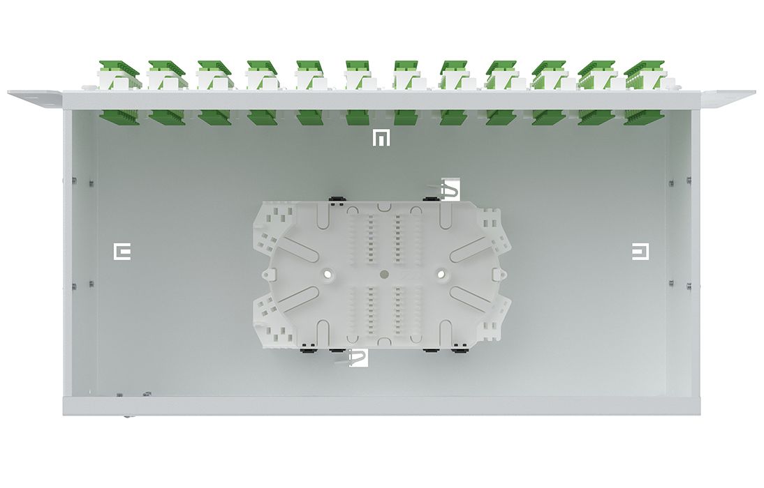 Крепление кабеля по оболочке осуществляется металлическим хомутом и/или нейлоновыми стяжками, на Т-образном лепестке. Центральный силовой элемент крепится при помощи металлической скобы. Сменные пластиковые планки на 4 и 8 отверстий обеспечивают установку адаптеров-розеток различных типов: FC, SC, ST, дуплекс LC.