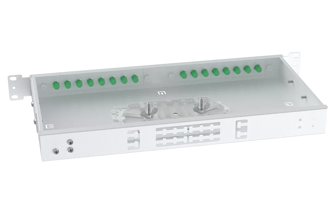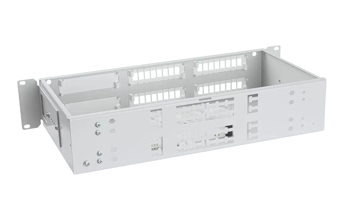 Предназначен для установки в стойки 19'', 23'', ETSI. Крепление кабеля по оболочке осуществляется металлическим хомутом и/или нейлоновыми стяжками, на Т-образном лепестке. Центральный силовой элемент крепится при помощи металлической скобы. Сменные планки на 8, 12 или 16 отверстий обеспечивают установку адаптеров-розеток различных типов: FC, SC, ST, дуплекс LC. Для кроссов данной серии имеются также сменные планки на 8, 12 и 16 дуплексных адаптеров SC.