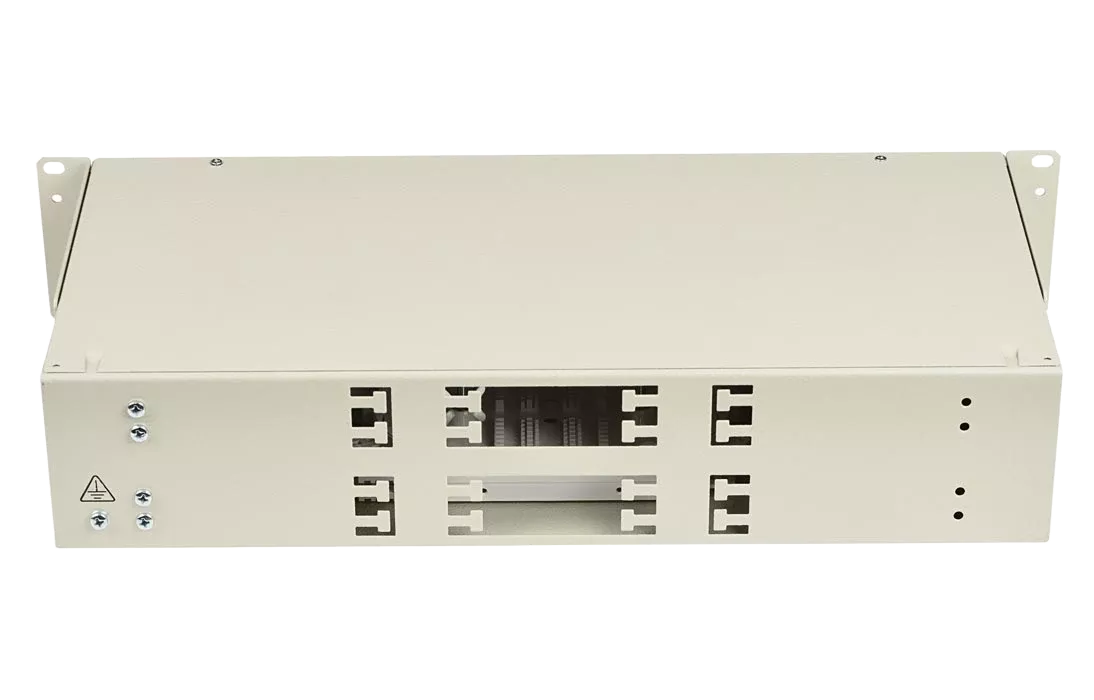 Предназначен для установки в стойки 19'', 23'', ETSI. Крепление кабеля по оболочке осуществляется металлическим хомутом и/или нейлоновыми стяжками, на Т-образном лепестке. Центральный силовой элемент крепится при помощи металлической скобы. Сменные планки на 8, 12 или 16 отверстий обеспечивают установку адаптеров-розеток различных типов: FC, SC, ST, дуплекс LC. Для кроссов данной серии имеются также сменные планки на 8, 12 и 16 дуплексных адаптеров SC.