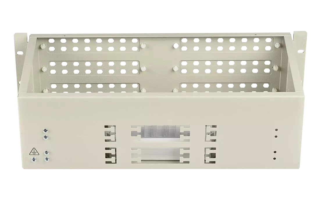 Предназначен для установки в стойки 19'', 23'', ETSI. Крепление кабеля по оболочке осуществляется металлическим хомутом и/или нейлоновыми стяжками, на Т-образном лепестке. Центральный силовой элемент крепится при помощи металлической скобы. Сменные планки на 8, 12 или 16 отверстий обеспечивают установку адаптеров-розеток различных типов: FC, SC, ST, дуплекс LC. Для кроссов данной серии имеются также сменные планки на 8, 12 и 16 дуплексных адаптеров SC.