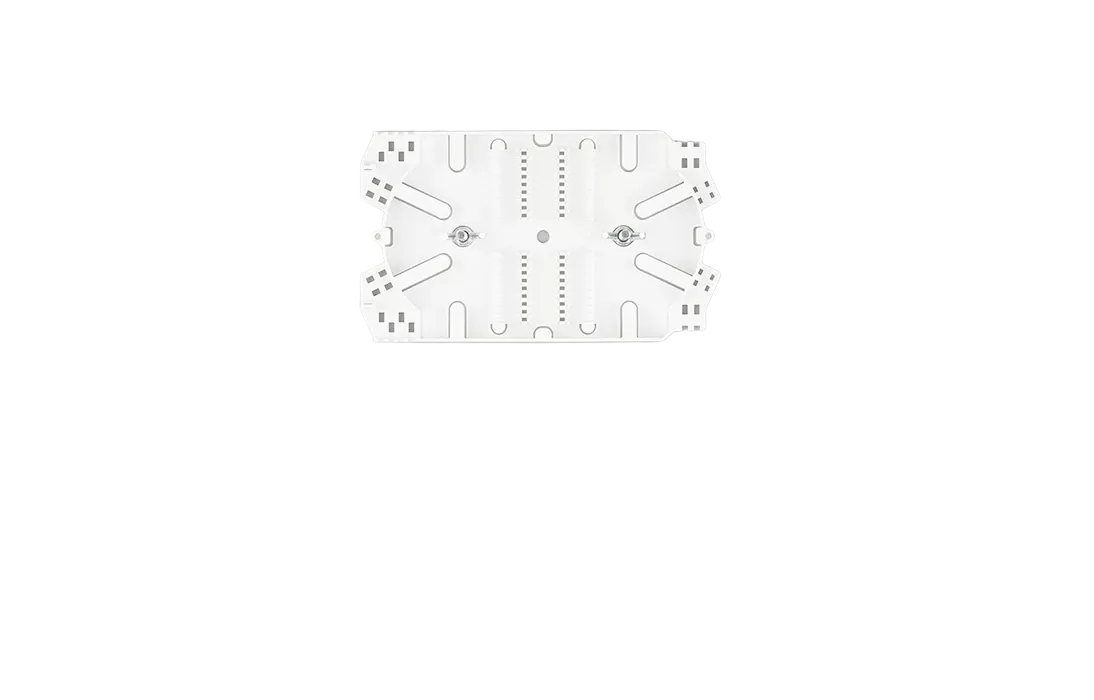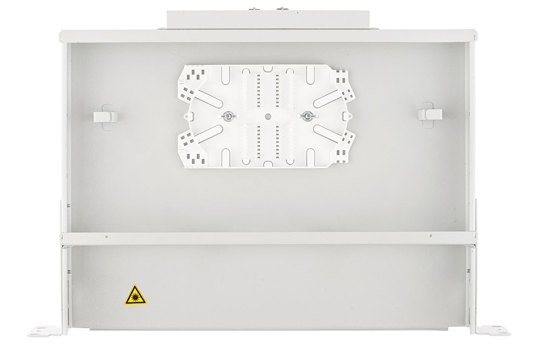 Крепление кабеля по оболочке осуществляется металлическим хомутом и/или нейлоновыми стяжками, на специализированном кабельном вводе, который крепиться на задней стенке корпуса. Центральный силовой элемент ОК крепится при помощи металлической скобы. Сменные металлические планки на 8 или 4 отверстий обеспечивают установку адаптеров-розеток различных типов: FC, SC, ST, дуплекс LC. Комплектуется съемной полкой-органайзером.