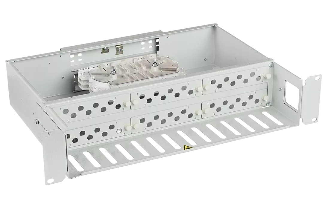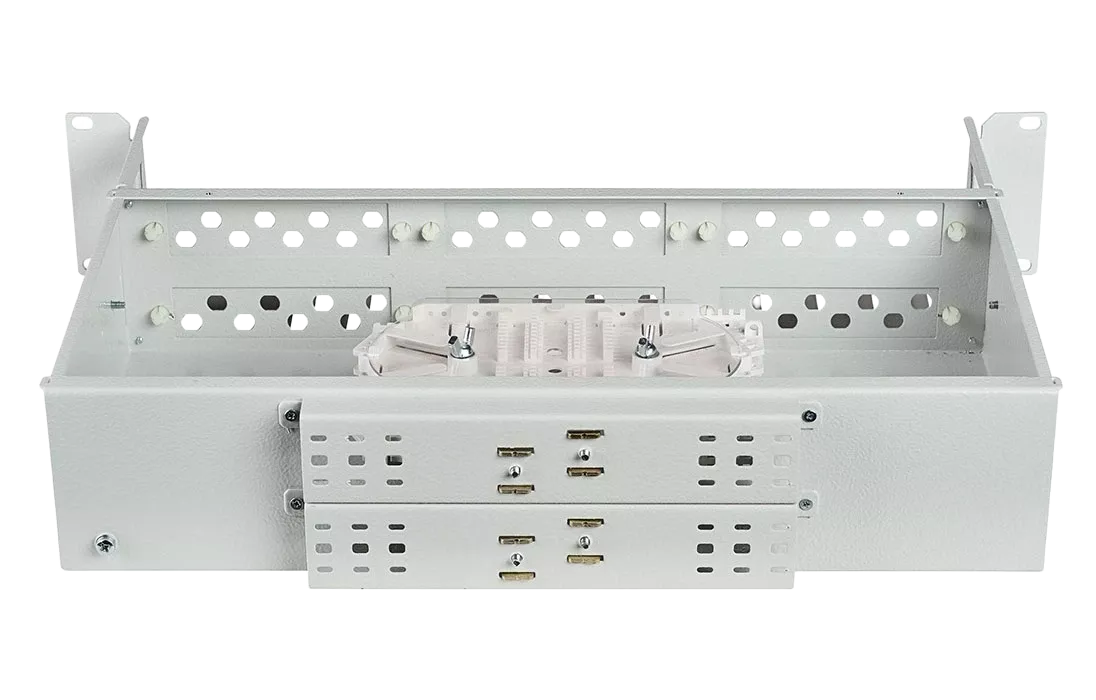 Предназначен для концевой заделки, распределения и коммутации оптических волокон волоконно-оптических кабелей, и устанавливается в стойках монтажных или шкафах телекоммуникационных типоразмера 19'', а при доукомплектации дополнительными кронштейнами в стойках и шкафах типоразмеров 21'' (ETSI) и 23''.